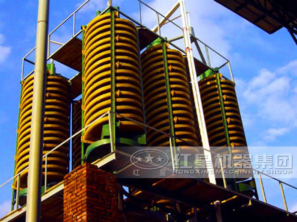 工業(yè)上大量使用時(shí),應(yīng)成組配置,用多管分礦器定量給礦,螺旋溜槽應(yīng)連續(xù)成排配置,以節(jié)約占地面積。