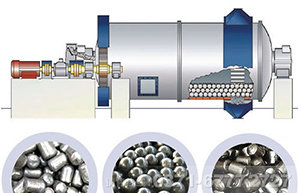 球磨機工作時主要是利用研磨體在磨倉內(nèi)隨著筒體的回轉(zhuǎn)而對物料進行撞擊,致使物料被研磨成粉。球磨機的筒體為長形圓筒,筒內(nèi)裝有研磨體,研磨體一般為鋼制圓球,并按不同直徑和一定比例裝入筒中,研磨體也可用鋼段。根據(jù)研磨物料的粒度加以選擇,物料由球磨機進料端空心軸裝入筒體內(nèi),當球磨機筒體轉(zhuǎn)動時候,研磨體由于慣性和離心力作用,摩擦力的作用,使它附在筒體襯板上被筒體帶走,當被帶到一定的高度時候,由于其本身的重力作用而被拋落,下落的研磨體像拋射體一樣將筒體內(nèi)的物料給擊碎。