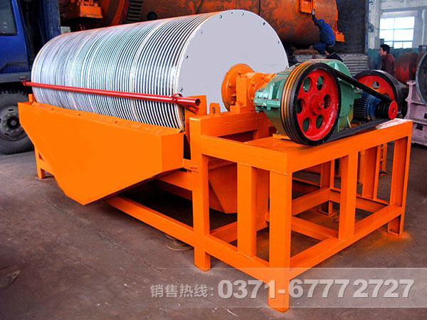 轉數高的磁選機在運轉中,由于速度比較快,磁性小些的連生體和脈石上來的機會就少,只有那些磁性較高的礦粒才可能選別上來,因而精礦質量就高些。反之轉數低,速度相對較慢,由于磁感應作用使磁性弱些的礦粒也有機會選別上來,造成精礦質量受到影響。所以在磁選過程中, 一般地說磁選機直徑小的采用高轉數,例如Φ600毫米直徑,采用40轉/分,直徑大的采用低轉數,例如Φ750毫米直徑,采用35轉/分。
